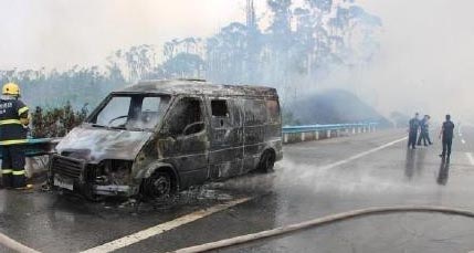 4月15日11時(shí),廣西橫縣六景鎮(zhèn)至欽州港高速距金桔收費(fèi)站約1公里處,一輛由南寧市開往欽州產(chǎn)業(yè)園區(qū)的運(yùn)鈔車起火,大火引燃了11箱鈔票和路邊的灌木叢,引發(fā)了熊熊山火?;饎?shì)隨后被趕到的消防官兵撲滅。
